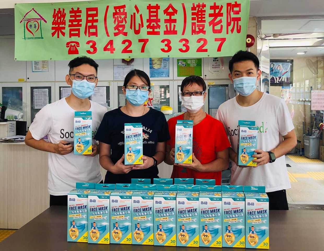 新型冠狀病毒疫情肆虐,社企苗十分感謝M4B捐贈BFE 99%口罩予護老院,在疫情期間幫助有需要的長者,以及為護老院默默耕耘的前線工作人員打氣,為他們提供一些防護物資。