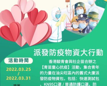 香港駿青會與社企苗主辦,油尖旺民政事務處協辦,集合青年的力量在油尖旺區的舊式大廈,上門派發抗疫物資包,物資包括...