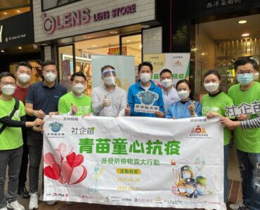 香港駿青會與社企苗合辦「青苗童心抗疫」到油尖旺區派防疫物資,一眾香港駿青會及社企苗代表與油尖旺民政事務處專員、...